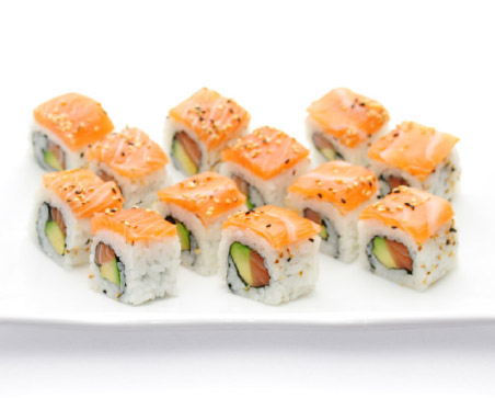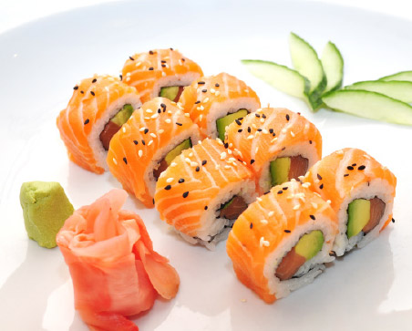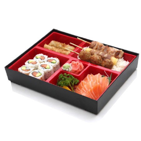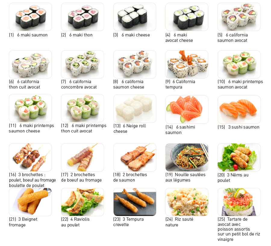 1 soupe, 1 salade, 1 riz, 6 sashimi saumon,