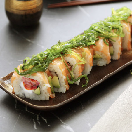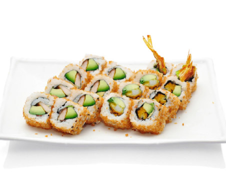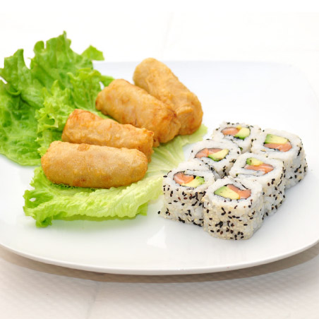 1 soupe, 1 salade, 8 Maki croustillant saumon avocat,