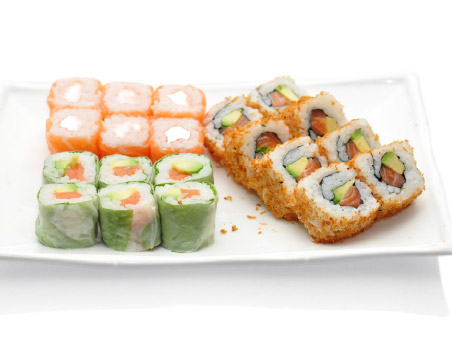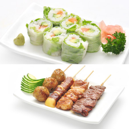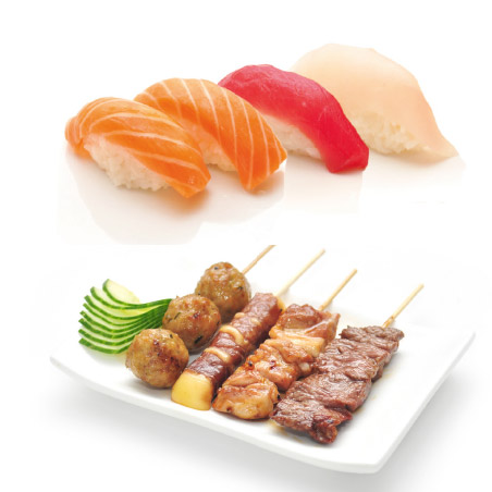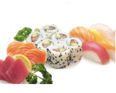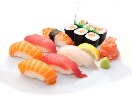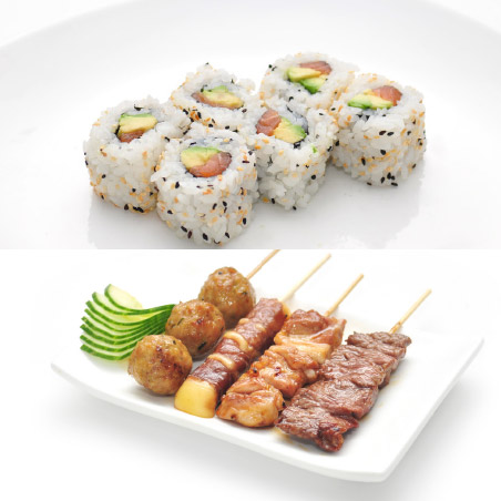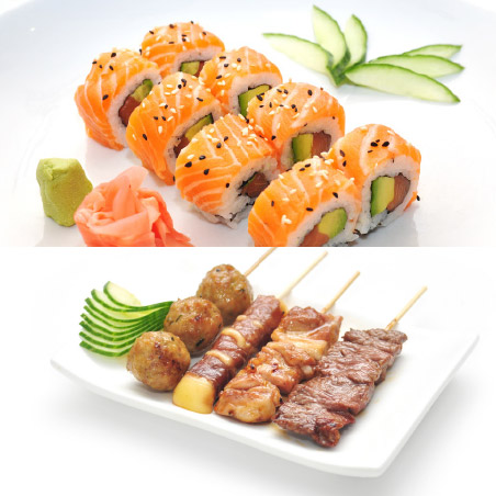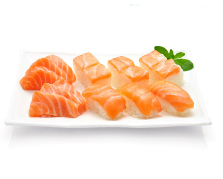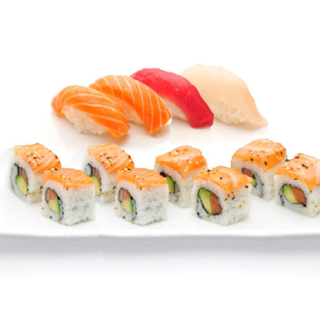6 Sashimi saumon et thon, 4 Sushi assortis