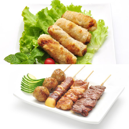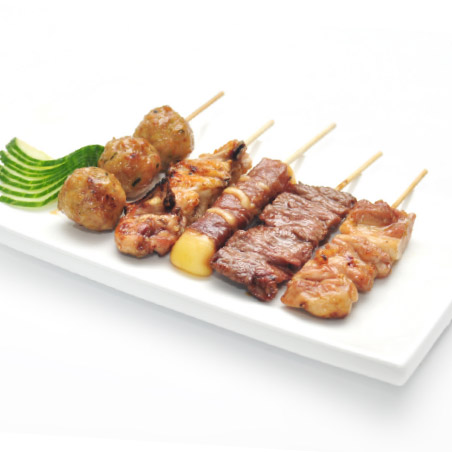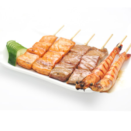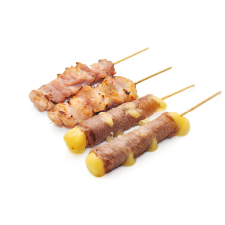 8 Brochettes: 2 poulet, 2 boeuf au fromage,