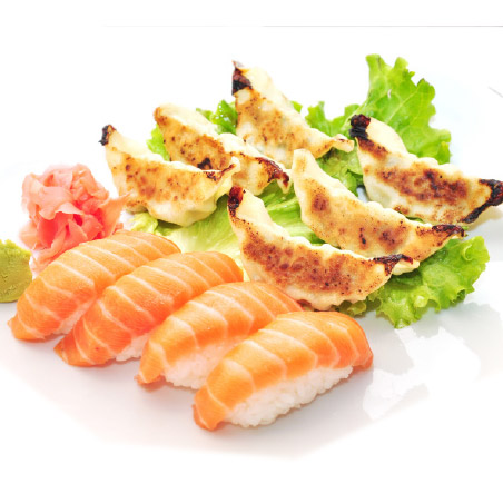 3 sushi, 6 sashimi mixte, 3 Gyoza